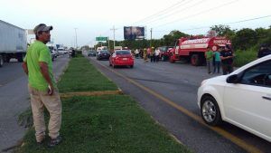 Los hechos ocurrieron en la carretera federal 307 a la altura de la delegación de Puerto aventuras cerca de las 6:30 de la tarde cuando personal del número de emergencias 911 recibió el llamado de auxilio en el que se mencionaba de uña percance automovilístico entre la unidad de transporte y vehículos por lo que al lugar arribaron elementos del cuerpo de bomberos y emergencias de Solidaridad para auxiliar a los heridos.