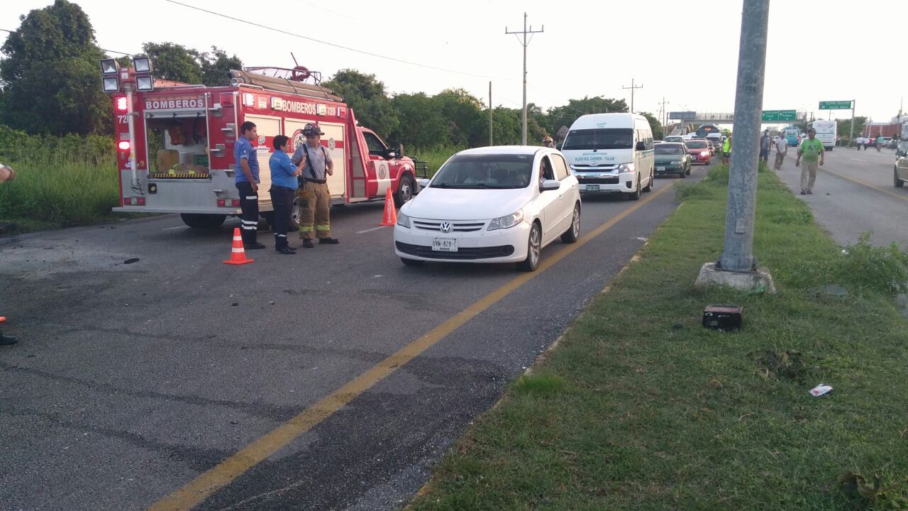 Los hechos ocurrieron en la carretera federal 307 a la altura de la delegación de Puerto aventuras cerca de las 6:30 de la tarde cuando personal del número de emergencias 911 recibió el llamado de auxilio en el que se mencionaba de uña percance automovilístico entre la unidad de transporte y vehículos por lo que al lugar arribaron elementos del cuerpo de bomberos y emergencias de Solidaridad para auxiliar a los heridos.