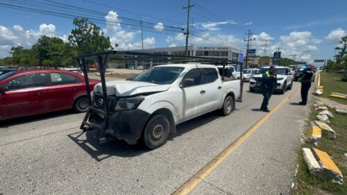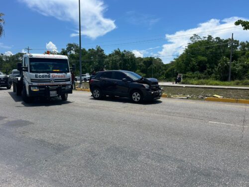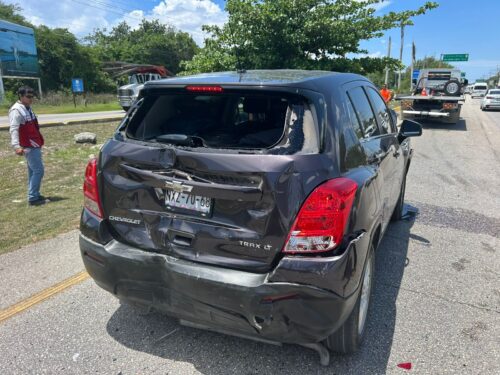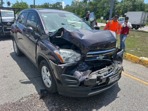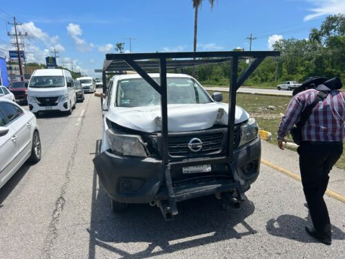 Playa del Carmen.– Tres camionetas se vieron involucradas en un aparatoso accidente sobre el bulevar Playa del Carmen la mañana de este lunes, luego de que una camioneta no logrará frenar a tiempo ante el tránsito detenido en el carril de alta velocidad.