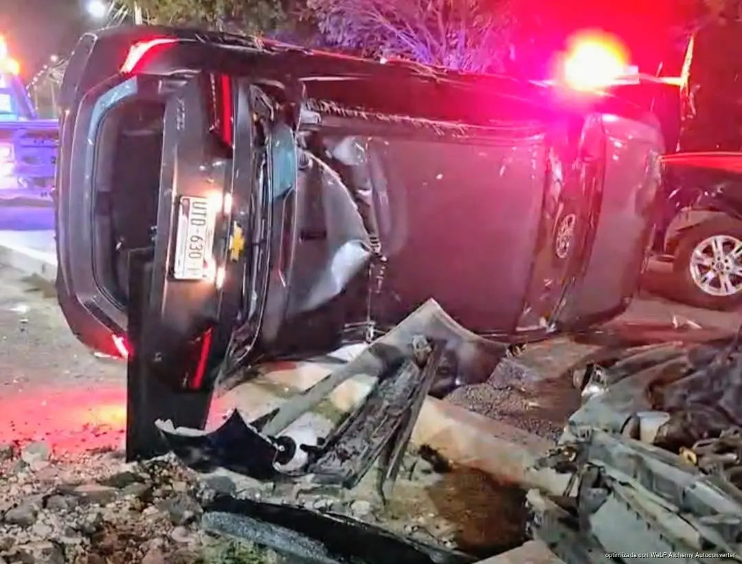 CANCÚN, Quintana Roo, 13 de abril de 2026.- Un aparatoso accidente vial registrado durante la madrugada de este domingo en el cruce de las avenidas Kabah y Nichupté dejó como saldo un vehículo volcado y daños materiales de consideración.
