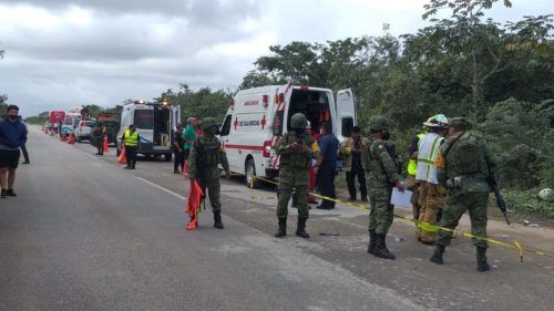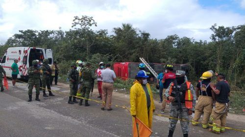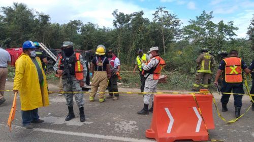 Lamentablemente al menos ocho personas se reportan como fallecidas, cuyos cuerpos quedaron dentro y fuera del autobús. En el lugar trascendió que el conductor del vehículo de transporte de pasajeros habría chocado contra un volquete que trae material para la construcción del tren maya y provocado su volcadura a un costado de la carretera.