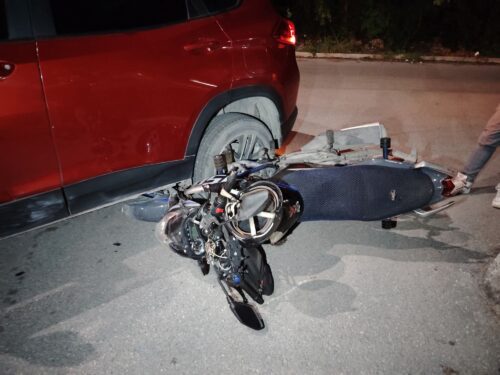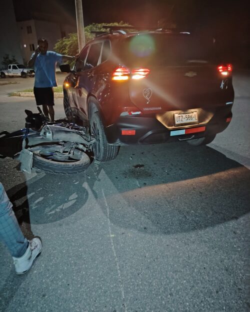 Durante la madrugada de este viernes se reportó un aparatoso choque sobre la Avenida Diamante, a la altura del fraccionamiento Paseos Nikte, en la región 255 de Cancún. El incidente involucró a una motocicleta Z 150 perteneciente a un repartidor de plataforma digital y a una camioneta particular que transitaba rumbo al interior del fraccionamiento.