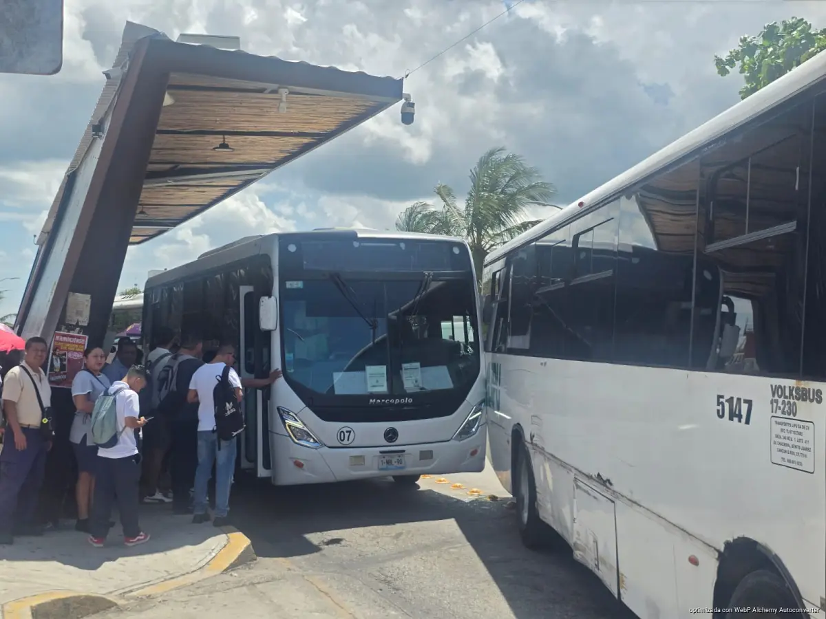 De acuerdo con reportes preliminares, la unidad 5147 de la empresa Lipu intentó cruzar antes que un transporte del hotel Grand Velas, el cual se encontraba detenido en un paradero realizando el ascenso de trabajadores.