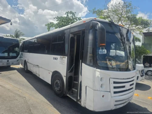 PLAYA DEL CARMEN, Quintana Roo, 24 de abril de 2026.- Una colisión entre dos unidades de transporte de personal se registró sobre la avenida Chemuyil, luego de que uno de los conductores intentara ganarle el paso a otro vehículo que se reincorporaba a la vialidad.