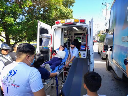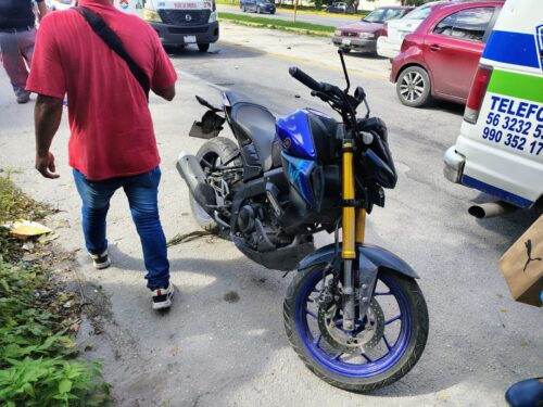CANCÚN, 22 de diciembre de 2025.- Una mujer que se desplazaba a bordo de una bicicleta y el conductor de una motocicleta resultaron lesionados luego de un accidente vial ocurrido sobre la avenida Andrés Quintana Roo, a la altura de Plaza Outlet, durante la mañana de este lunes.