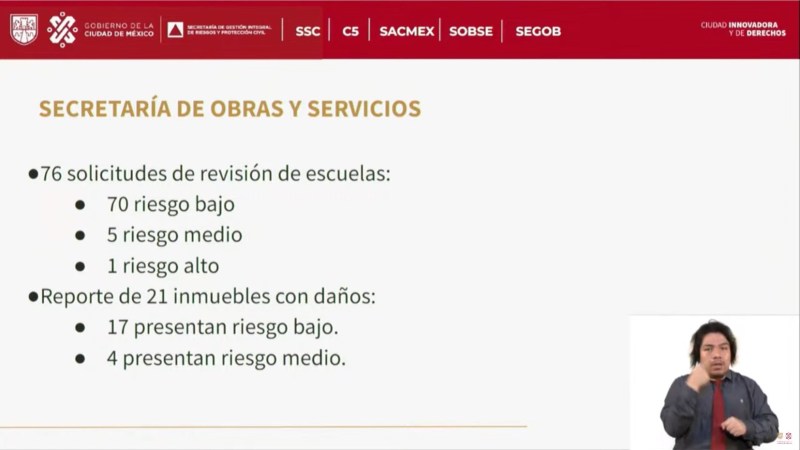 En conferencia de prensa, la administración detalló que tras el movimiento telúrico el C5 tuvo 43 reportes de daños:
