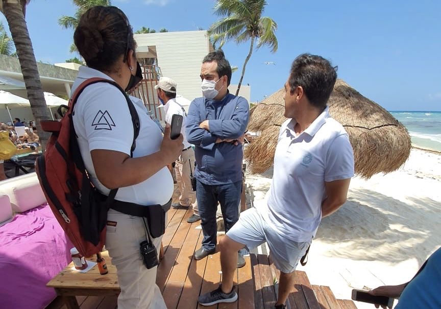 PLAYA DEL CARMEN, Quintana Roo, 16 de Mayo.-La Dirección de Fiscalización y Cobranza del Ayuntamiento de Solidaridad clausuró el club de Playa “Playa Corazol” ubicado al interior del Hotel Gran Coral por no acatar las disposiciónes del Gobierno del Estado, que ha ordenado el cierre de estos clubes considerados no escenciales, asi como la venta de alcohol, y este centro de diversión ofrecía servicio a poco mas de 40 clientes en el citado negocio.