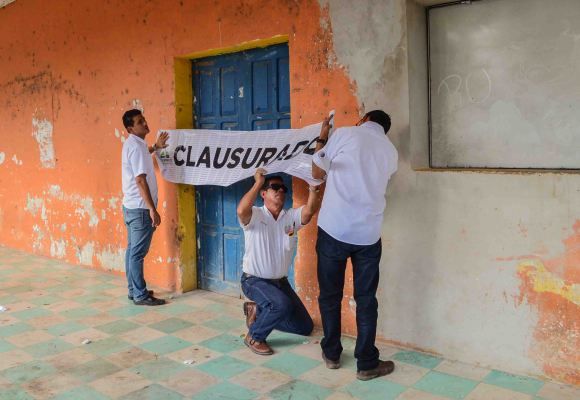 PUERTO MORELOS, Quintana Roo, 1 de junio.- El ayuntamiento de Puerto Morelos clausuró esta tarde las obras de demolición en la vieja estación del “truck” en esta delegación, en la que el presidente del comisariado ejidal, Juan Diego García Betancourt, promueve la construcción de una tienda de conveniencia, pese al rechazo ciudadano y del sector comercial local.