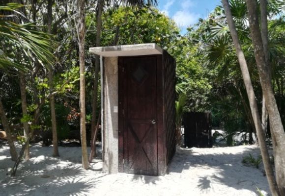 En la inspección se observó la construcción de una palapa de madera con techo de zacate piloteada sobre un deck de madera, dos baños y un lavamanos construidos sobre superficie de concreto, así como una bodega para artículos de limpieza de 5.03 metros cuadrados.
