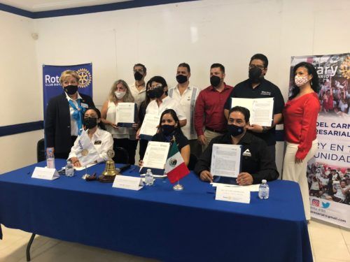 PLAYA DEL CARMEN. – En la firma de un convenio del Club Rotario Playa del Carmen Empresarial con varias asociaciones civiles, institutos educativos y el gobierno municipal, los participantes señalaron que llevarán a cabo proyectos educativos y en defensa del medio ambiente.
