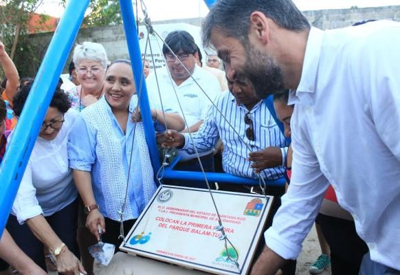 PLAYA DEL CARMEN, Quintana Roo, 7 de Enero.- La Presidenta Municipal de Solidaridad, Cristina Torres Gómez, colocó la primera piedra del parque que será construido en Balam Tun y que beneficiará a más de cinco mil familias de cinco fraccionamientos cercanos, como respuesta a solicitudes ciudadanas recibidas durante la audiencia pública “Que hable Solidaridad” celebrada el 21 de octubre pasado.