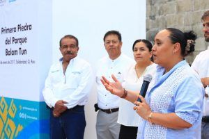 Coloca Cristina Torres primera piedra de parque en Balam Tun