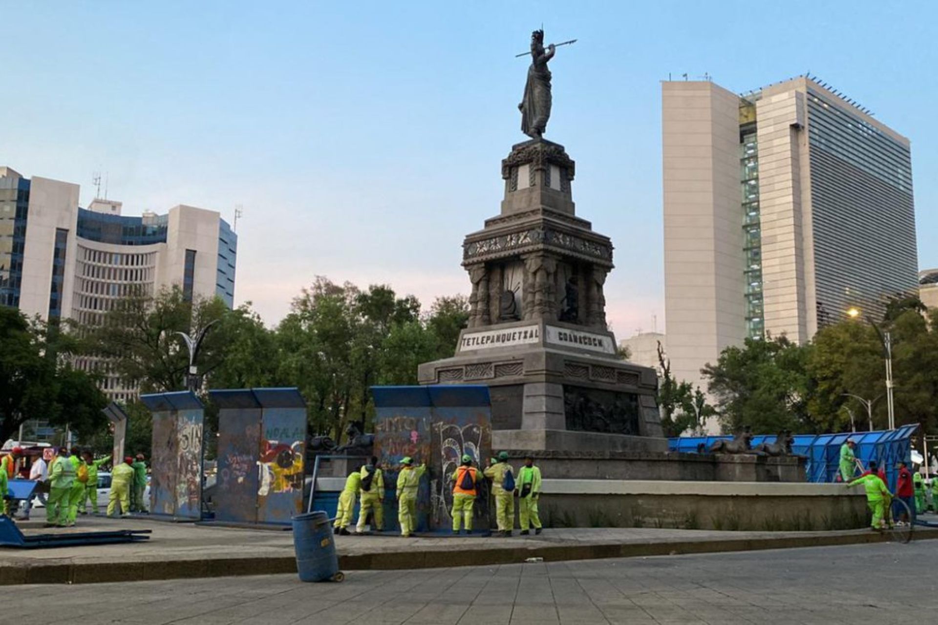 A lo largo de este sábado, trabajadores del Gobierno capitalino colocaron vallas metálicas para el resguardo de monumentos y en la plaza comercial ubicada en Paseo de la Reforma.