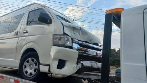 ‘Como de costumbre’ conductor de un camión de la empresa del valle por circular a exceso de velocidad, impacto por alcance una van Toyota Hiace color blanco de transporte privado la cual del fuerte impacto salió proyectada contra una camioneta particular marca Mazda.