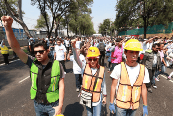 CIUDAD DE MÉXICO, 19 de septiembre.- Exactamente a las 13: 14 horas de este 19 de octubre, a un mes de ocurrido el sismo, cientos de capitalinos se dieron cita en los distintos puntos donde hubo derrumbes en la Ciudad de México para rendir homenaje a las víctimas mortales del sismo del pasado 19 de septiembre, en donde con el puño en alto y guardando silencio recordaron a aquellos que perdieron la vida.