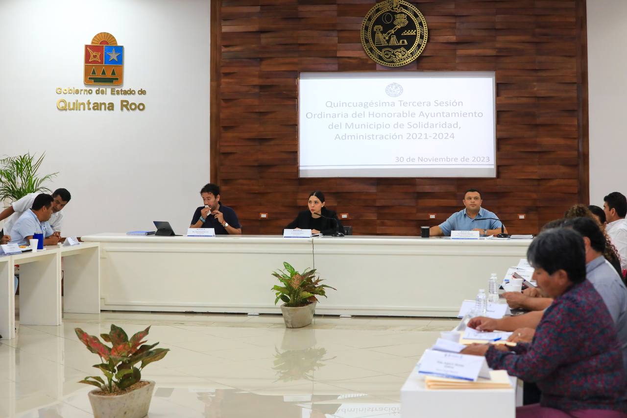 PLAYA DEL CARMEN, Quintana Roo, 30 noviembre. – En la Quincuagésima Tercera Sesión Ordinaria del Ayuntamiento, dirigido por la regidora Anaiza Quian en representación de la presidenta municipal Lili Campos, se aprobaron acuerdos que benefician a las y los solidarenses entre los que destacan la protección a los derechos de la niñez y juventud, así como la donación de un predio para la edificación del CAM y la creación del Reglamento de Alumbrado Público.