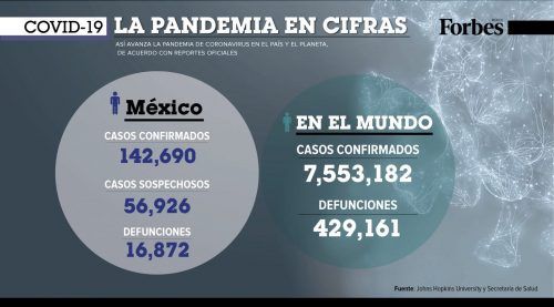 En México, hasta el momento se han registrado 16,872 muertes por coronavirus (Covid-19) y 142,690 casos confirmados, de acuerdo con autoridades de Salud.