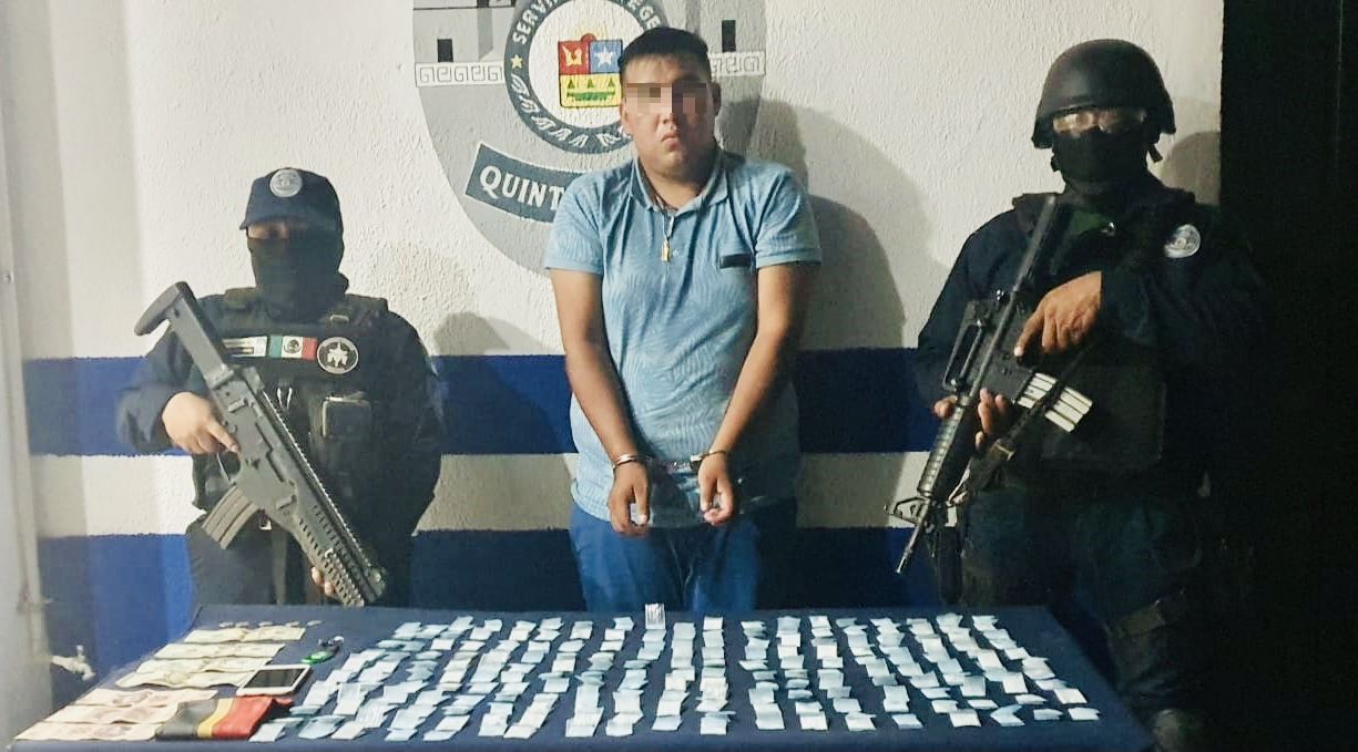 TULUM, Quintana Roo, 25 de junio.- Como parte de las labores de vigilancia y refuerzo de la seguridad, elementos de la Policía Quintana Roo Tulum aseguraron a una persona en posesión de 200 dosis de polvo blanco al parecer cocaína.
