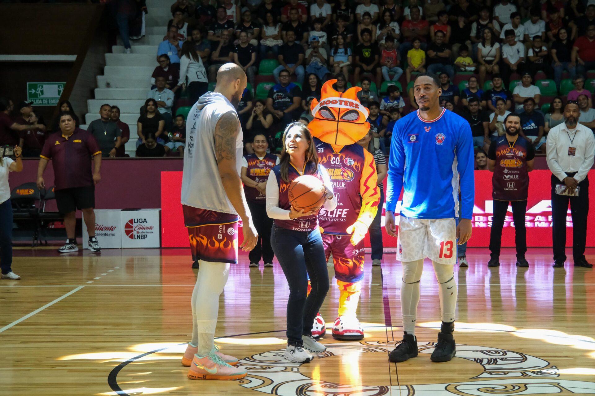 Otro de los atractivos que se hizo presente la mascota “Flama 33”, quien con sus ocurrencias hizo reír a las y los aficionados, dejando un gran recuerdo a todos los que se dieron cita a este inmueble, que además tuvo la presentación del jugador chetumaleño Luis Armando Sandoval Arjona, un jugador con 17 años practicando esta disciplina y que desde hace más de 3 meses ha estado entrenando con El Calor de Cancún.