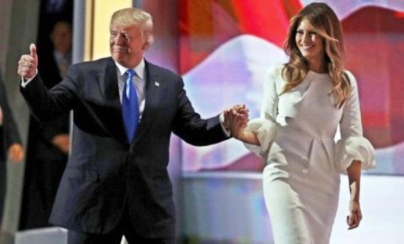 La oradora principal de la noche fue Melania Trump, quien aseguró que su marido es el mejor para recuperar la seguridad del país y del planeta (no se entendió bien, porque ella no es experta en este tema). Pero para no variar, su esposo aparentemente ya no aguantaba más ceder el podio y, en contra de la coreografía tradicional de estos eventos, en los que el candidato no aparece hasta el último día de la convención, Trump decidió subir al escenario para presentar a su mujer.