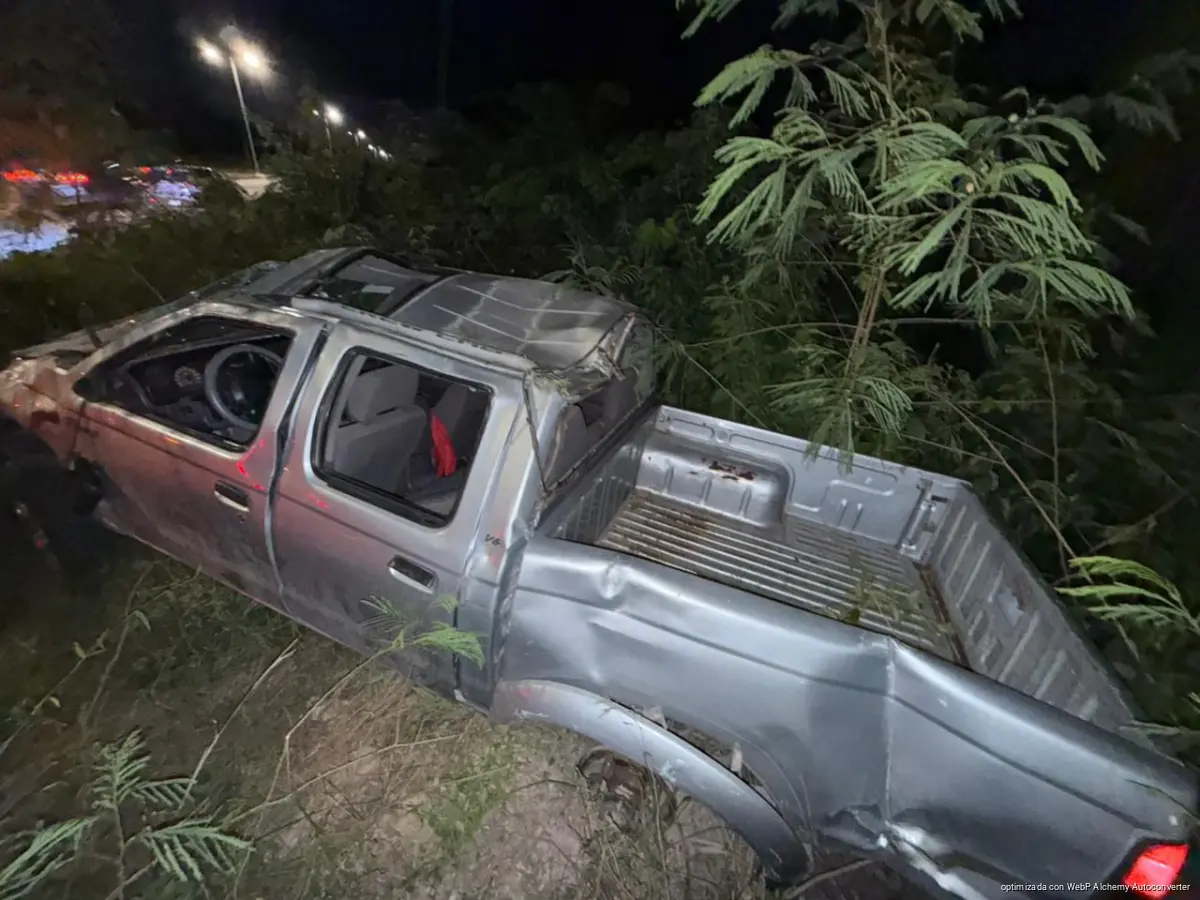 De acuerdo con testigos presenciales, el accidente ocurrió cuando una camioneta Nissan Frontier, color gris, circulaba a exceso de velocidad y, por causas que aún no han sido confirmadas, el conductor perdió el control del vehículo. La unidad salió de la cinta asfáltica y volcó al menos en dos ocasiones, terminando dentro de un área verde a varios metros de la carretera, con daños estructurales severos que la dejaron en pérdida total.