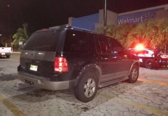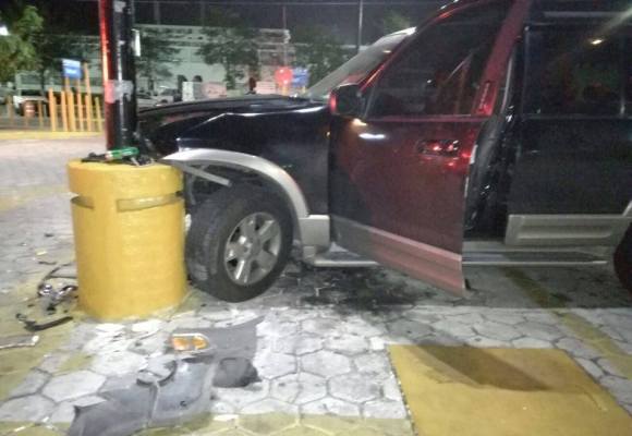 El hecho se registró alrededor de las 01:00 horas, precisamente en el estacionamiento de una cadena de tiendas ubicado en la calle 8 con Avenida 30, cuando el conductor de una camioneta tipo Expedition color negro al dar marcha a la unidad terminó su carrera contra una base de concreto.