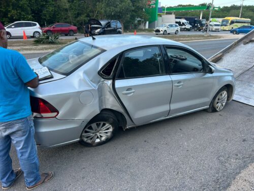 Playa del Carmen, Q. Roo.– Un conductor en evidente estado de ebriedad provocó un aparatoso accidente la madrugada de este miércoles en las inmediaciones del fraccionamiento Galaxias 2, luego de perder el control de su vehículo, impactar una luminaria y terminar invadiendo el carril contrario sobre la avenida Colosio.