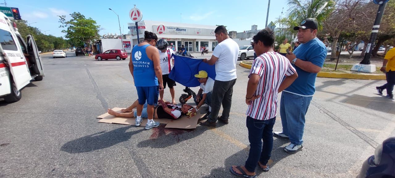 Playa del Carmen, Solidaridad.– Con un fuerte golpe en la cabeza y múltiples raspones terminó un hombre que circulaba en un scooter en el fraccionamiento Villas del Sol, tras perder el control de su vehículo al pasar sobre un bache y caer al pavimento.