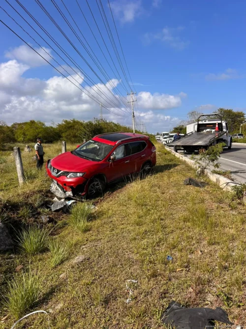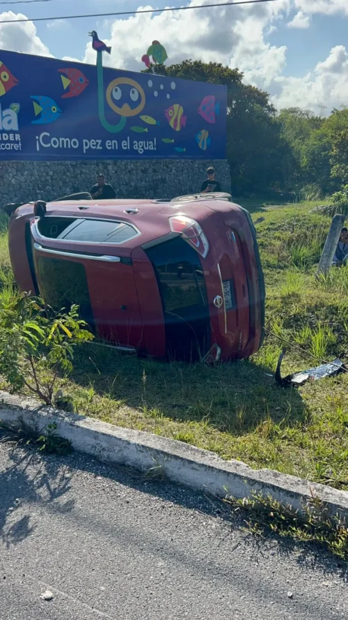 PLAYA DEL CARMEN, Quintana Roo, 10 de abril de 2026.– Un conductor resultó ileso luego de volcar su camioneta sobre la carretera federal 307, tras presuntamente quedarse dormido al volante.