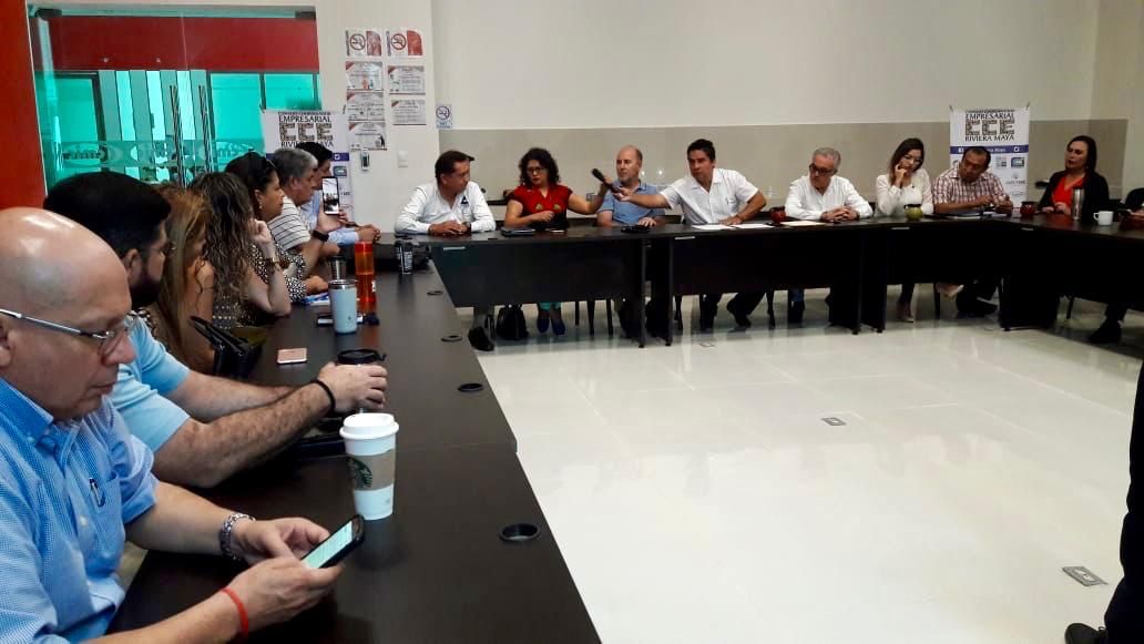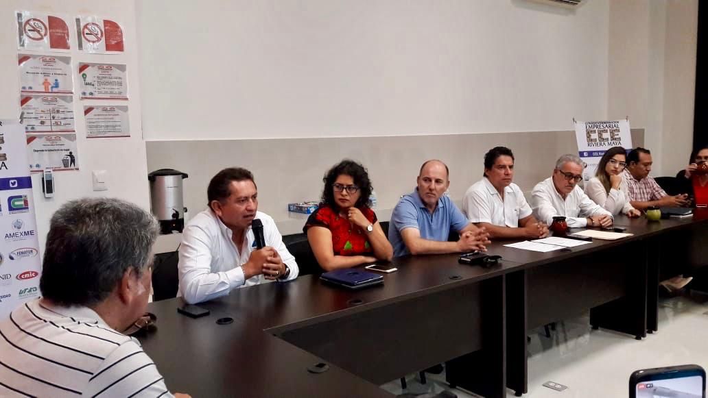 En la conferencia de prensa acompañaron a Lenin Amaro Betancourt, presidente del CCERM, Andrea Lotito, vice presidente de la Asociación de Hoteles de la Riviera Maya; José Luis Hernández Barragán, presidente de Canaco Servytur de Playa del Carmen; Luis Vidal, Tesorero ;CCERM , Jesús San José, presidente SINDEMEX Solidaridad; Araceli Sandoval, presidente AMEXME Riviera Maya, Ricardo del Valle Prieto Consejero del CCERM, Sugeiry Prieto, presidente del Colegio de Arquitectos de la Riviera Maya; Sergio Camas, Presidente del Colegio de Ingenieros de Playa del Carmen, Manuel Moguel Manzur, Vice-presidente CMIC en Quintana Roo; Vanessa Ríos, presidente de AMPI Riviera Maya; Manuel Paredes, Director de la AHRM, Gerardo Valadez Victorio, Consejero Nacional CANIRAC, entre otras personalidades