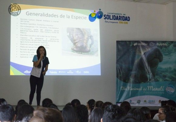 PLAYA DEL CARMEN, Quintana Roo, 9 de septiembre.- Más de 200 estudiantes participaron en el ciclo de conferencias “Conociendo al Manatí” que promovió el Gobierno de Solidaridad a través de la empresa Dolphin Discovery, quien instruyó a los alumnos del Colegio de Bachilleres, el CECyTE y CETMAR, sobre la importancia de esta especie para el ciclo de la naturaleza.