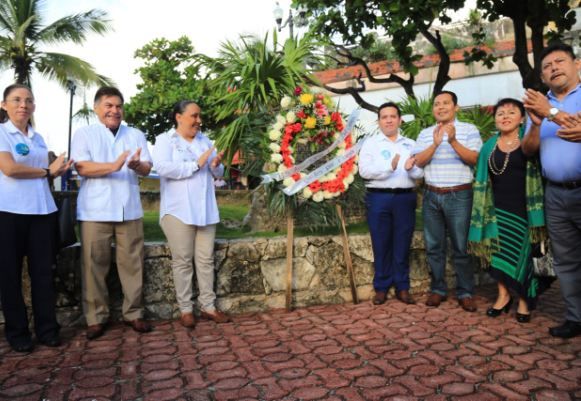 PLAYA DEL CARMEN, Quintana Roo, 14 de noviembre.- La Presidenta Municipal, Cristina Torres Gómez, acompañó este martes a los hijos de los fundadores de Playa del Carmen, a la colocación de la ofrenda floral en el parque Fundadores, actividad con la que inicia la celebración por el 115 aniversario del nacimiento de la ciudad.