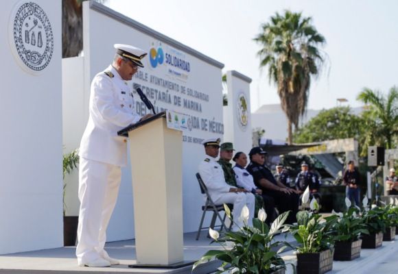 Asimismo, subrayó que la Armada de México enfila su proa hacia la modernización de sus sistemas, equipos e infraestructura en la tierra, en el aire y en el mar. “Hoy contamos con unidades de infantería de elite, con personal altamente entrenado para realizar operaciones de precisión en cualquier tipo de terreno, con unidades de superficie moderna y eficientes, muchas de ellas construidas en nuestros propios astilleros”, agregó.