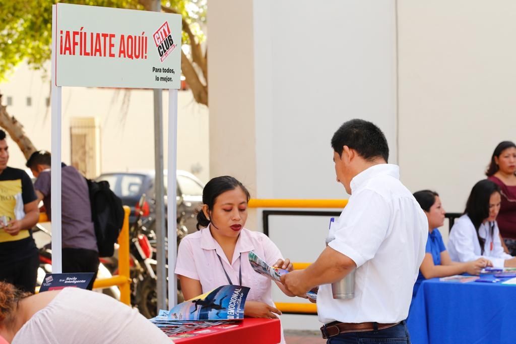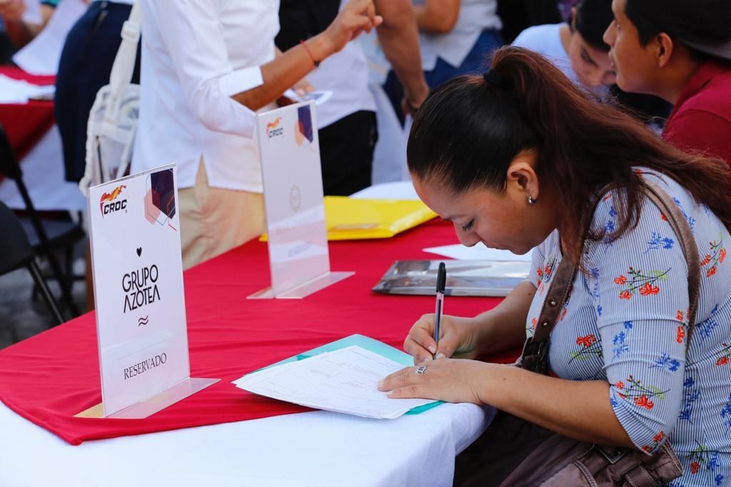En la explanada cívica del edificio de la CROC de esta ciudad se instalaron las mesas donde personal de las áreas de Recursos Humanos pudieron ofertar las vacantes entre las y los buscadores de empleo.