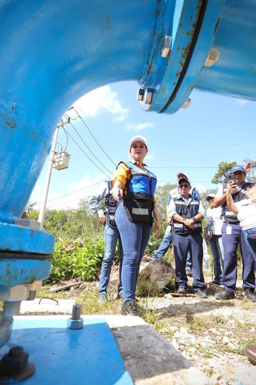 PLAYA DEL CARMEN, Quintana Roo, 15 de febrero. – Con la finalidad de lograr que, de una vez por todas, el suministro de agua potable sea más eficiente para todas las familias solidarenses, la presidenta Lili Campos supervisó el avance que presentan los cinco pozos de captación en la zona ejidal que realiza la empresa Aguakan. Ahí recalcó el compromiso de renovar el servicio de distribución con calidad en beneficio de ciudadanos y visitantes.