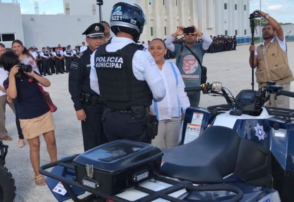 “El reconocimiento es pleno para los resultados que han están dando todos y cada uno de ustedes los que hoy están aquí, los que están sirviendo en este momento, los que están de descanso ese es el verdadero logro de alguien cuando tiene bien puesto su uniforme, tiene vocación de servicio, cinco cuatrimotos que inicialmente se integran pero ya he girado instrucciones a la oficial mayor porque esta la licitación para 25 cuatrimotos más que harán un total de 30, de las cuales muchas serán entregadas a ustedes que están en los sectores habitacionales, para que puedan recorrer las colonias y estar más cerca de los ciudadanos”.