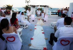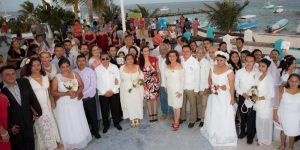 Contraen nupcias 24 parejas en playa de Puerto Morelos