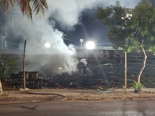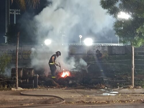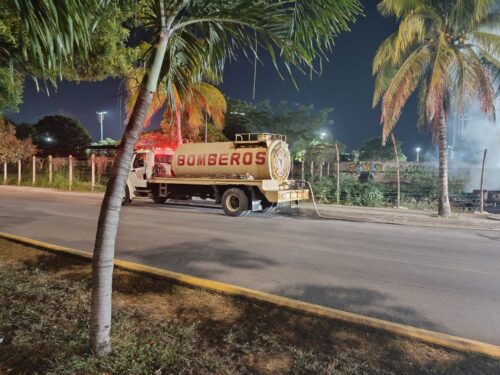 Playa del Carmen.– Elementos del Heroico Cuerpo de Bomberos acudieron de madrugada a la colonia Ejido, luego de que personas en situación de calle provocaran un incendio en un lote baldío que alarmó a los vecinos debido a que el humo comenzó a entrar por sus viviendas.