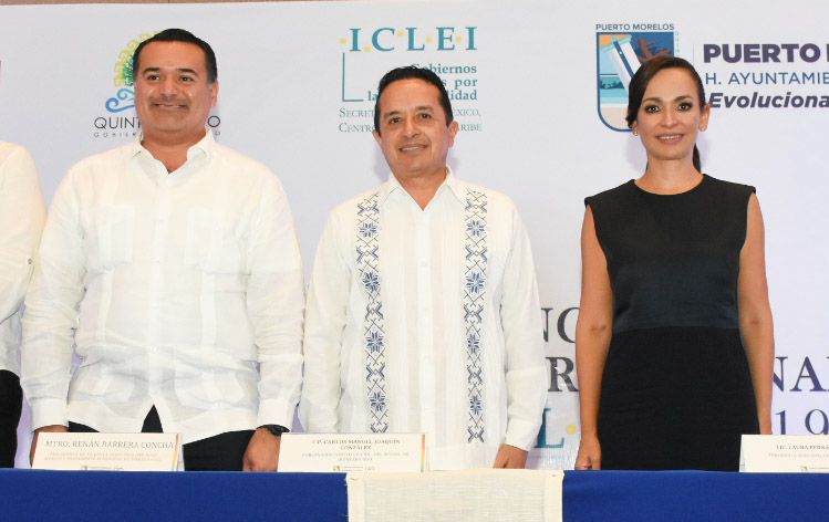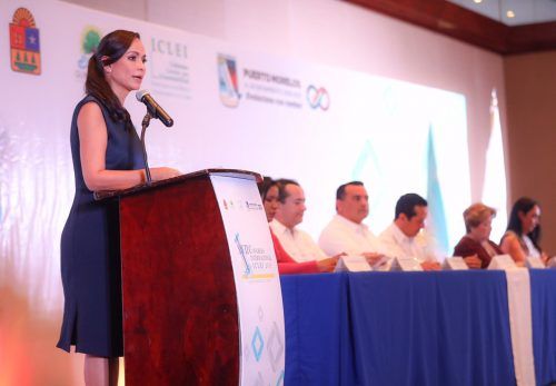 PUERTO MORELOS, Quintana Roo, 27 de noviembre.- En su calidad de presidenta adjunta de la Junta Directiva de ICLEI México, la alcaldesa Laura Fernández Piña hizo un llamado a todos los sectores, incluidas las autoridades locales y regionales a incrementar acciones y refrendar el compromiso por la protección de los recursos naturales y así garantizar la supervivencia y bienestar de las futuras generaciones, esto, en la inauguración del XVII Congreso Internacional de ICLEI-Gobiernos Locales por la Sustentabilidad, del Secretariado para México, Centroamérica y el Caribe, que estuvo a cargo del gobernador del estado, Carlos Joaquín González.