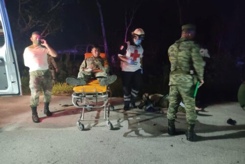 Los cinco militares heridos fueron atendidos por diferentes ambulancias que los trasladaron al hospital general de Cancún.