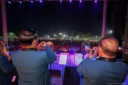 Leona Vicario, Puerto Morelos, Quintana Roo, 14 de febrero de 2026.– La magia del Carnaval llegó a esta delegación, donde poco más de 2,000 personas atestiguaron anoche la coronación de los diferentes reyes y reinas y disfrutaron la presentación de la Sonora Dinamita en el campo de béisbol de la comunidad.