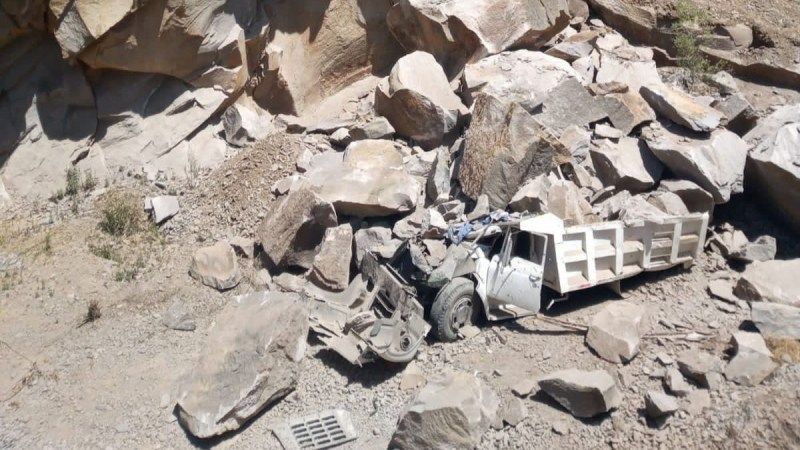 Un camión de volteo quedó sepultado entre los escombros. No se reportan personas fallecidas.