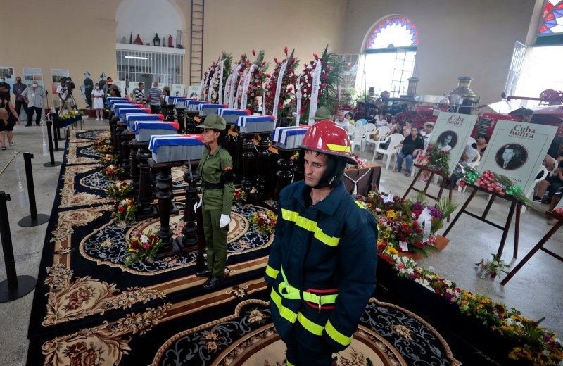 Las honras tuvieron lugar a apenas unos kilómetros de la base de grandes depósitos de combustible que ardieron entre el 5 y el 12 de agosto en una zona industrial en las afueras de Matanzas, en el occidente de la isla.