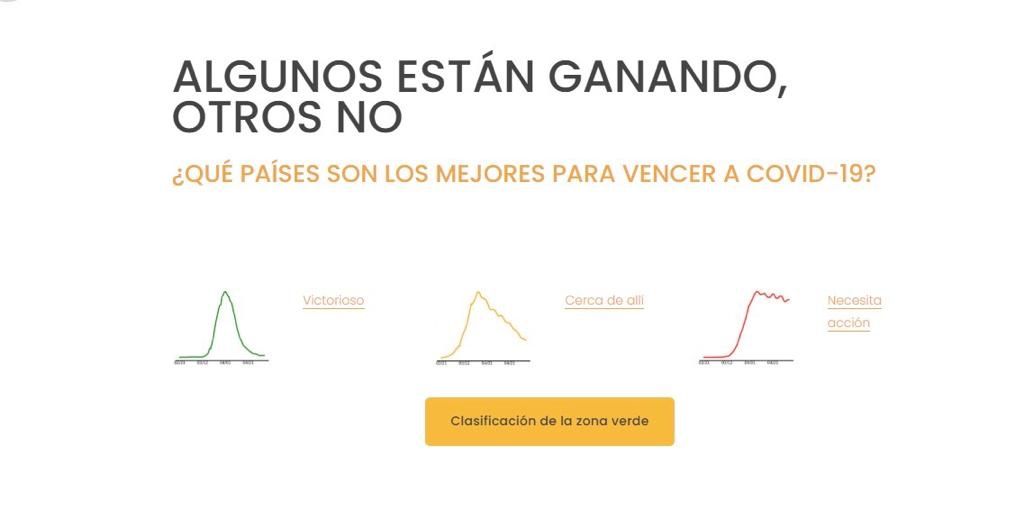 Las gráficas en la plataforma de EndCoronavirus reportan nuevos casos diarios de Covid-19 promediados durante los últimos siete días. Con base en esta medición fija los colores del semáforo: en verde los países que “están venciendo el virus”; en amarillo los que “ya están cerca” y en rojo los que “necesitan tomar medidas”.