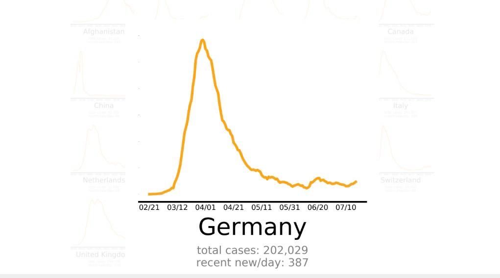 MÉXICO, 19 de julio.- Países que han adoptado el hábito de usar cubrebocas, como Alemania, China, Corea del Sur y Cuba han evitado incrementos significativos en contagios por Covid-19 que generen picos en la pandemia, según gráficas y mediciones de la coalición internacional EndCoronavirus.
