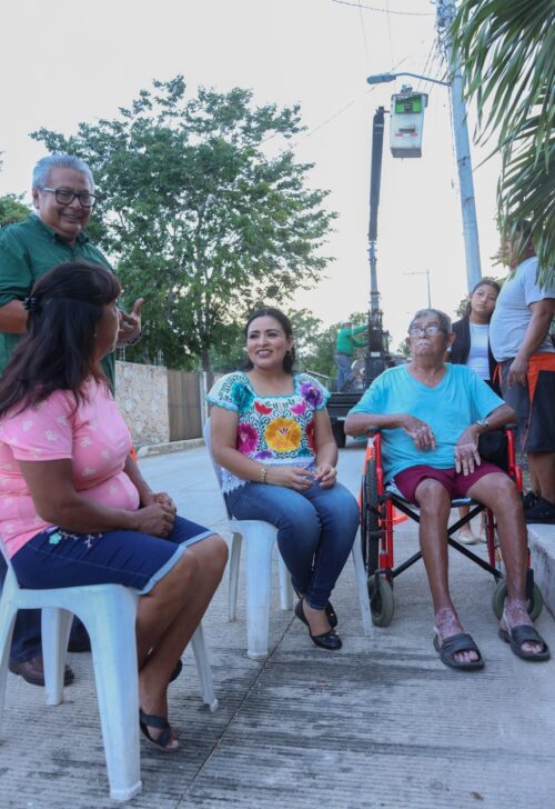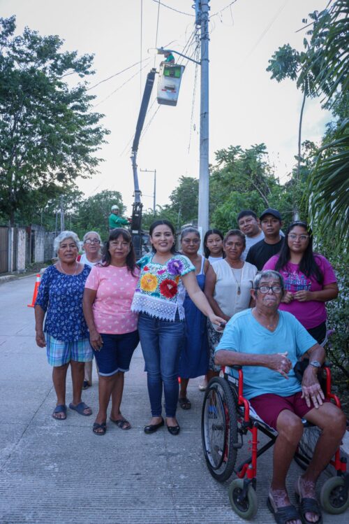 En tanto, en la calle Tierra de la delegación fue recibida por doña Rita Balam y vecinos, quienes de igual forma se congratularon por dar cumplimiento a la solicitud de dotar de alumbrado público la calle, y con ello, transitar de manera segura.