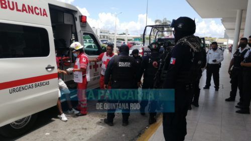 De acuerdo con un primer reporte de la policía, un custodio de valores se encontraba dentro de los baños de Centro Maya, cuando por accidente su arma de fuego cayó al piso y se disparó, proyectil que alcanzó a herir a un muchacho de playera roja en su mano derecha.