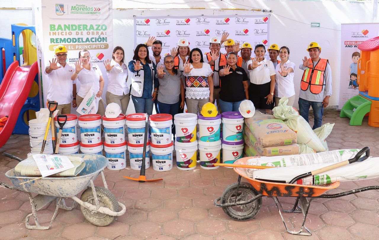 Puerto Morelos, Quintana Roo a 13 de junio de 2025.- “Trabajamos para dar un nuevo rostro a uno de los planteles más emblemáticos de Puerto Morelos como lo es nuestro Centro Asistencial de Desarrollo Infantil (CADI) “El Principito”, gracias a la colaboración de aliados como la Fundación The Fives, pronunció la presidenta municipal Blanca Merari Tziu Muñoz al dar el banderazo de inicio de obra.