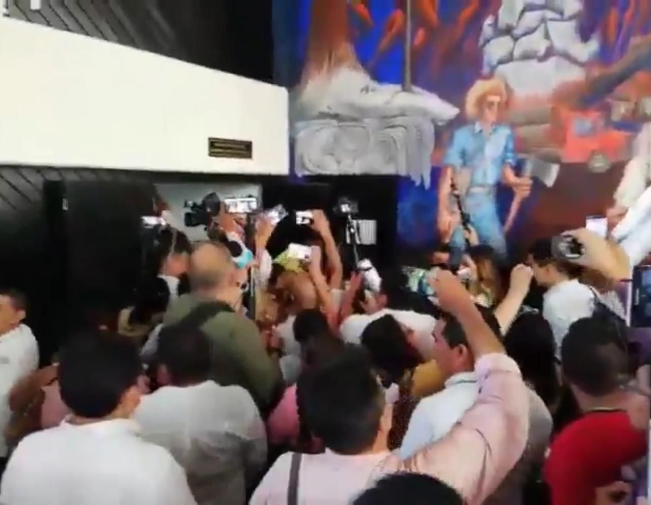 Entre gritos que “es del pueblo” y “no que no íbamos a pasar” los manifestantes entraron, ante la preocupada mirada de los elementos de seguridad.