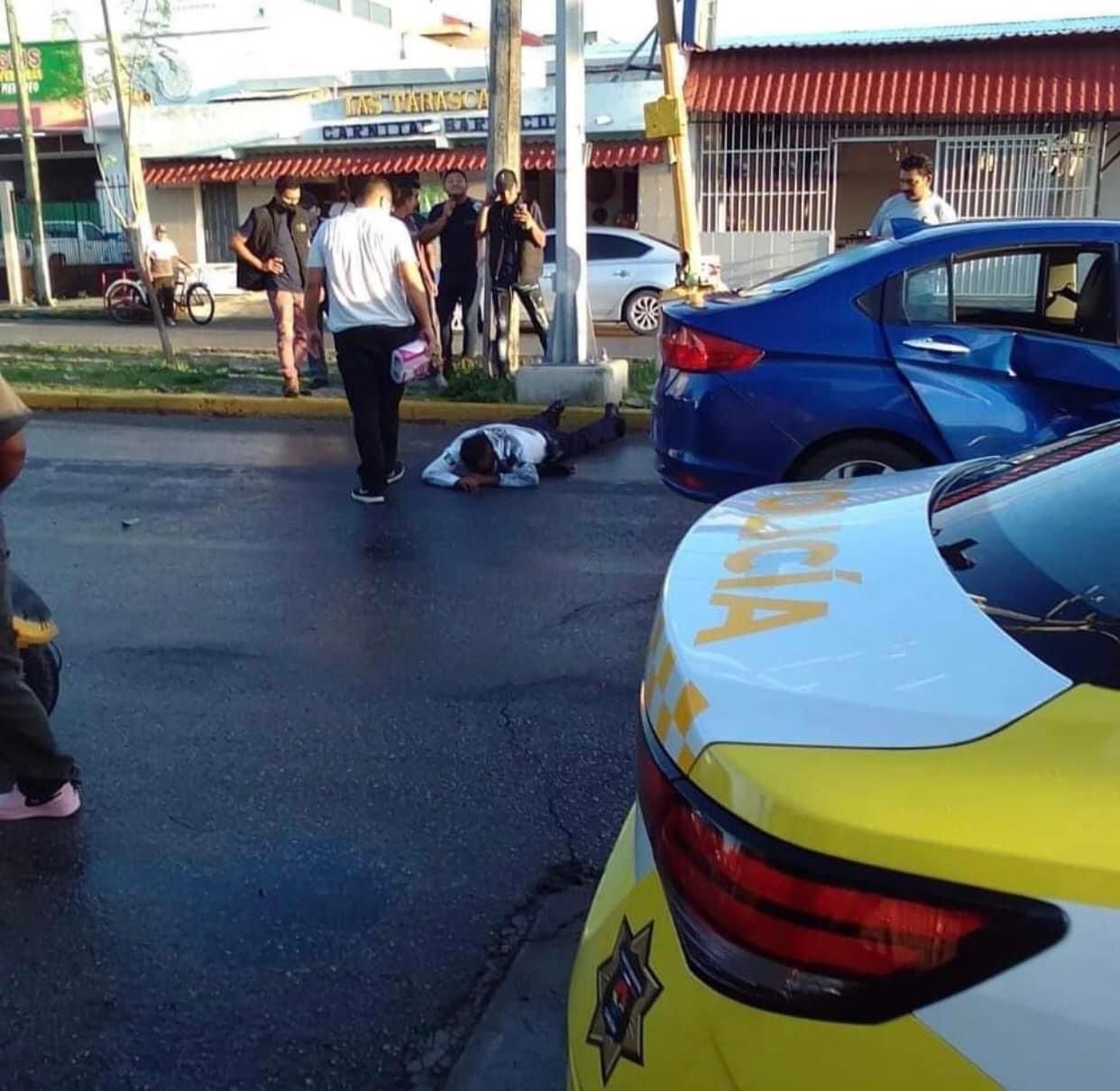 CANCÚN, Quintana Roo, 29 de junio.- Un elemento de tránsito municipal terminó arrollado este miércoles sobre la avenida Lombardo Toledano de la Supermanzana 91 cuando dos conductoras chocaron y resultaron heridas.